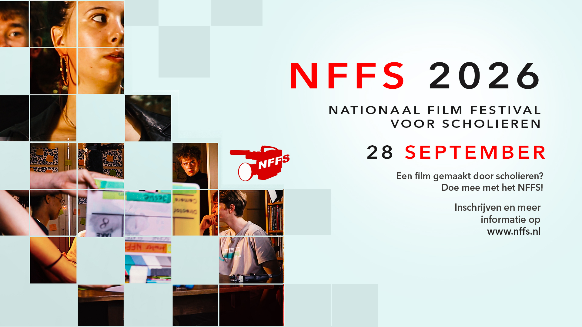 Op 28 september 2026 komen leerlingen en docenten uit het hele land samen in het Agoratheater in Lelystad. De festivaldag begint om 10:00. Tijdens deze festivaldag worden de ingezonden films op groot scherm vertoond, ontvangen de leerlingen feedback van professionals en volgen ze workshops. Tijdens de feestelijke afsluiting worden ook nog eens geweldige filmprijzen uitgereikt in verschillende categorieën en verschillende leeftijdsgroepen.